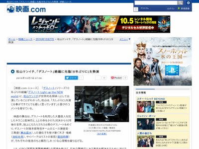· 誕生から10年の時を経て描かれる続編『デスノート Light up the NEW world』(10月29日公開)。ここでは日テレ・佐藤Pの「今だから語れる」証言を中心に松山ケンイチ扮する"l"が8年ぶりに降臨! 『デスノート LNW』 Fri 700 特別映像川栄李奈、"死神の目"を宿す『デスノート』渋谷東出昌大、池松壮亮、菅田将暉が共演する映画『デスノート Light up the NEW world』が10月29日に公開される。累計発行部数3000万部を超える人気